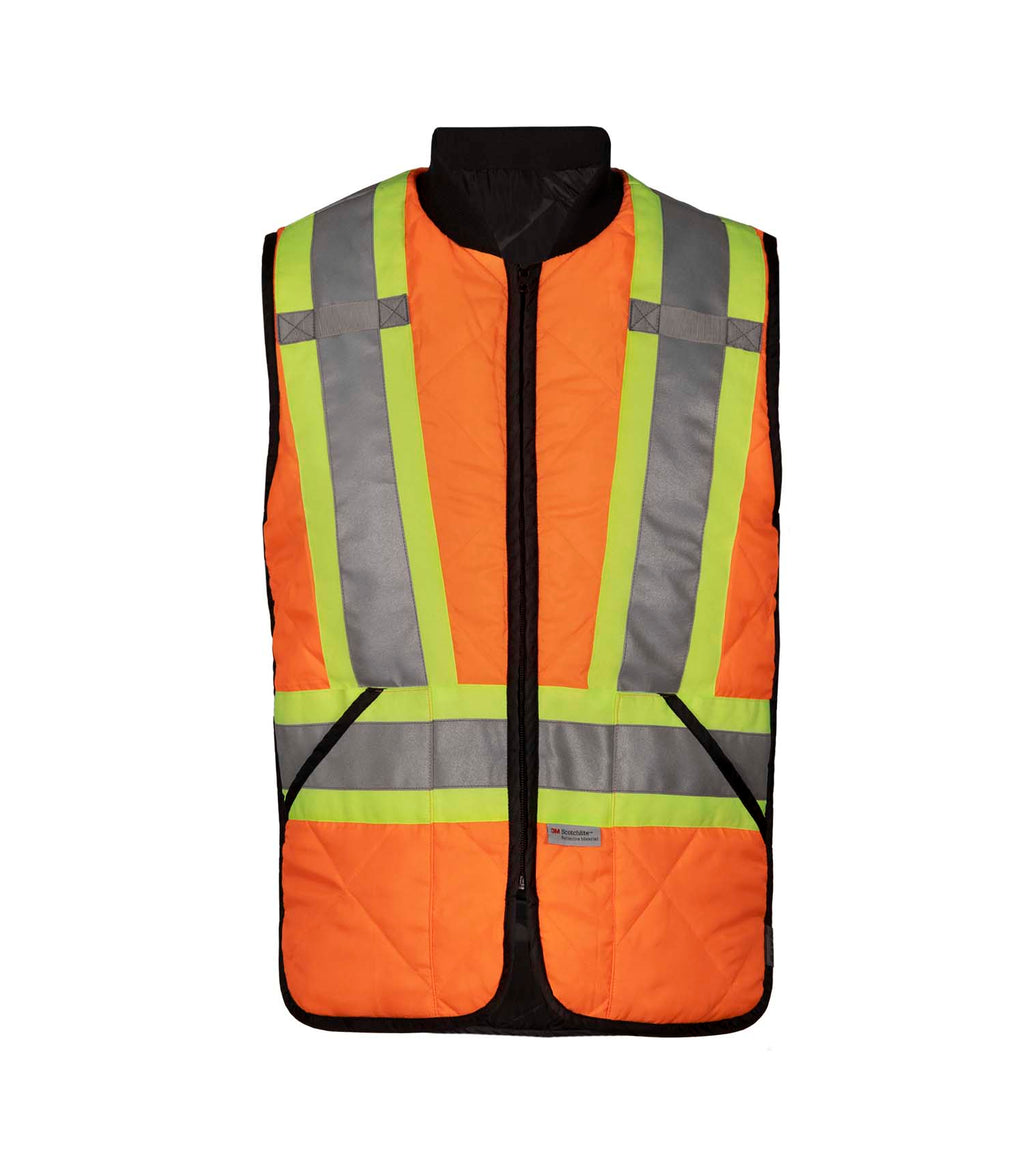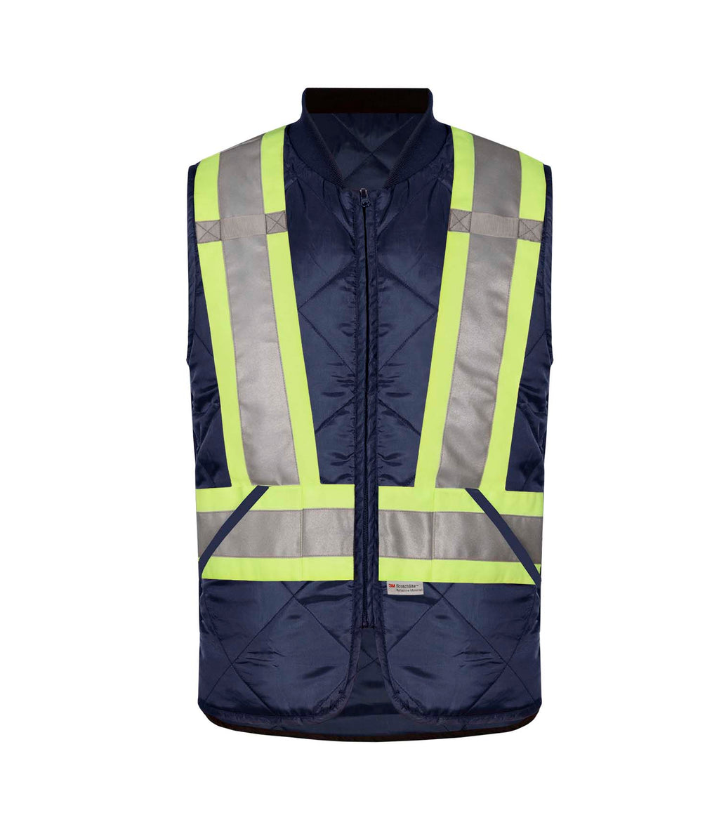 Be visible on your worksites with this high-visibility insulated work jacket. Reversible, lightweight and equipped with reflective stripes, it combines comfort and safety. Its high-visibility reflective stripes comply with CSA Z96-22 class 1 (navy) or class 2 (orange) standards.