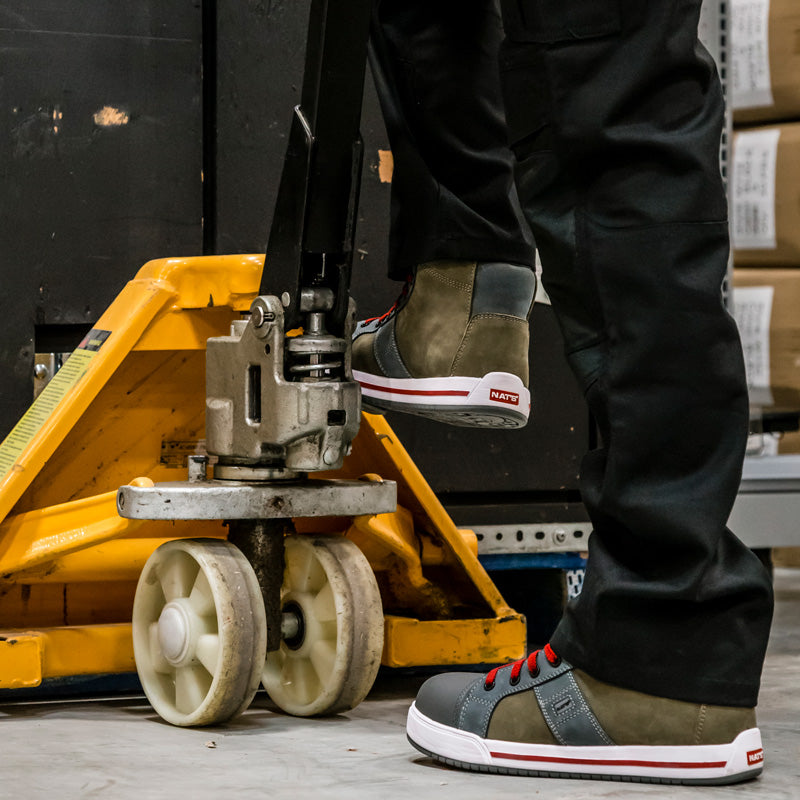 Ce bottillon de sécurité ne contient aucun métal. Assemblé sur une semelle ultra confort double densité phylon et caoutchouc, ce bottillon au style unique est idéal pour le travail d'entrepôt. Il est de plus approuvé CSA classe 1, CE, ASTM et diélectrique.